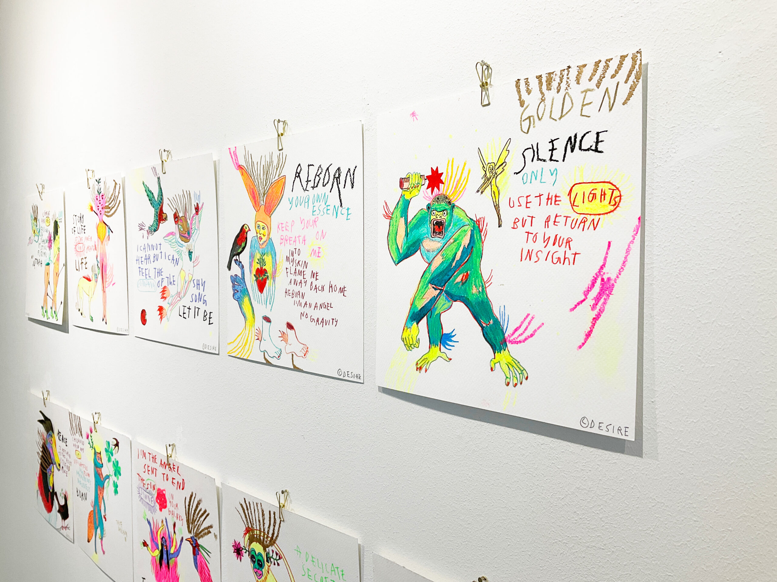 In the solo exhibition in 2021, Desire had felt a strong interest in Japanese anime and she had launched serious series on such topics.