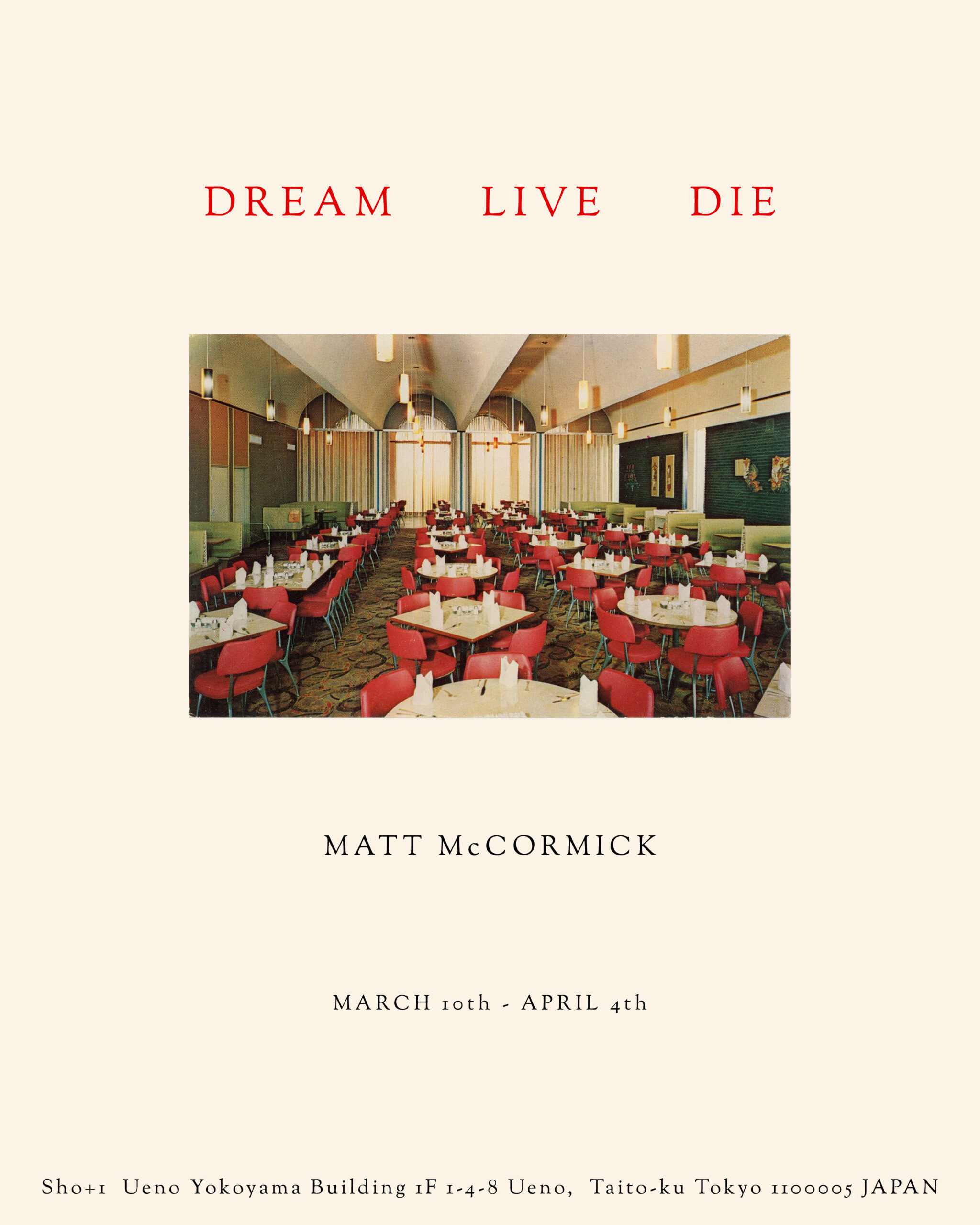 Sho+1 is pleased to announce DREAM LIVE DIE, a solo exhibition by Matt McCormick from Tuesday, March 10 through Saturday, April 4, 2026.