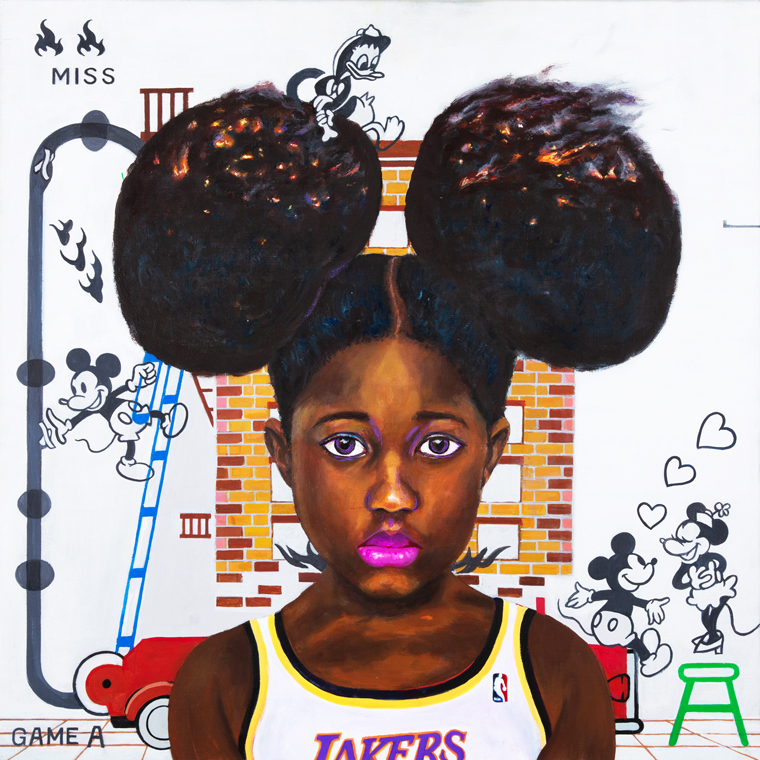 25歳より独学で絵を描き始め、褐色女性を愛らしい動物やコミック・キャラクターと組み合わせた作品で急速に人気を博し、ニューヨークのローブロー・アート誌「Art?Alternatives」において”Life of Brian”として特集が組まれました。2001年より東京から北へ約350kmの地元仙台市に拠点を移し2011年東日本大震災の当事者となった彼は、それまでのファンタジックな作風と並行して、社会、政治が抱える矛盾や葛藤をテーマにした制作も始めます。震災直後、被災地の現場で倒壊した建物がブルーシートで覆われていたり、様々な場面で非日常的な出来事が起きた時、ブルーシートや手動式充電器など普段気にもとめていなかったモノが必要不可欠だったことから、モノの「本当の価値は何なのか」と自問自答します。いつかブルーシートを自身の作品の素材として使用できないかと思うようになリました。その頃、友人を通し日本ツアーで宮城・松島を訪れていたイングランド出身の女優で歌手のジェーン・バーキンに対面する機会に恵まれ、佐藤は新品のブルーシートに彼女のサインを貰いました。その後、2013年にこのブルーシートを使用し、HERMÈSのバーキンにインスパイアされた作品を制作。これが佐藤の作品においてコンセプチュアルな側面での代表作となりました。近年では国内アートフェアへの参加をはじめ、オランダ、スイス、ロサンゼルスなど国内外で作品を発表しています。