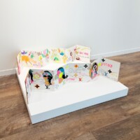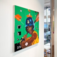 クララ・デジレは2002年に1年ほど日本で生活した経験があり、日本のアニメ文化に傾倒し、作品に様々なキャラクターをグラフィティー・タッチで取り入れる手法を確立しました。2021年の個展では、デジレは世界を席巻している日本のアニメをテーマとした本格的なシリーズ作品を発表しました。近作では、繰り返し夢の中に現れる啓示的なキャラクターがランダムに記された言葉と共に描かれています。彼女はこれらが自分自身の居場所を確認するためのストーリーであると語ります。