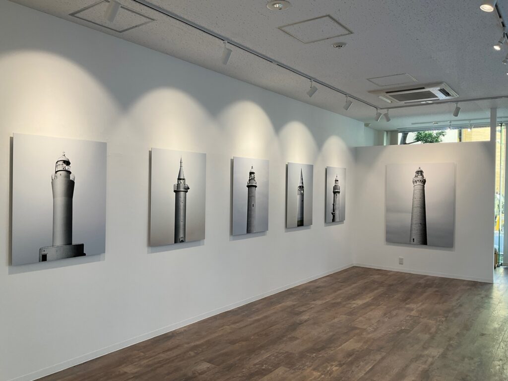 「BP」とはBase Point[基準点]を意味します。櫻井はコロナ禍の中、自身との対話の中で見えてきた自分が戻るべき場所[基準点]を灯台に投影し制作をはじめました。犬吠埼灯台や日立灯台、出雲日御碕灯台といった日本各地の灯台を被写体にしています。